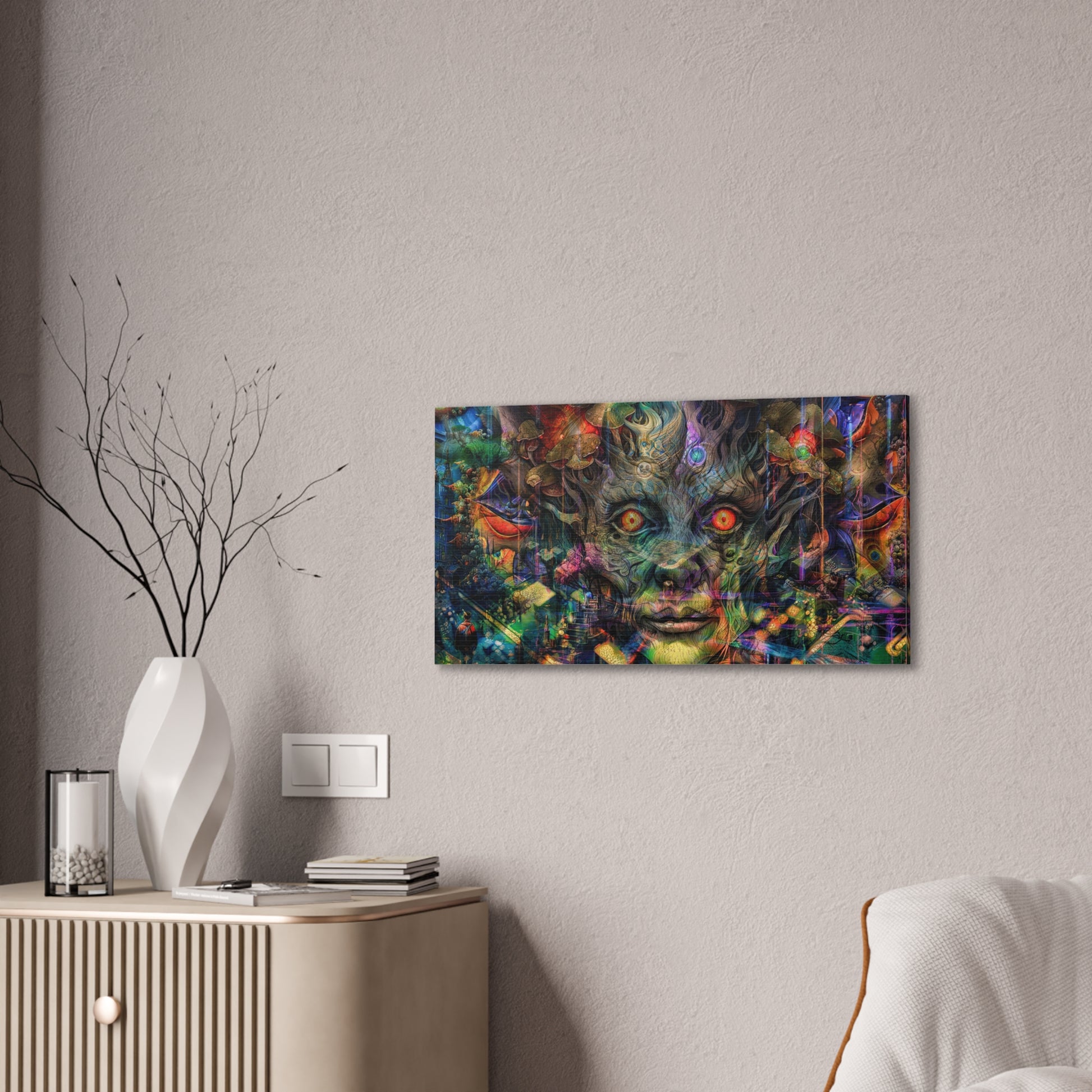 Bring dreamscapes to life with a premium-quality canvas print from psychedelic artist Callahan Indovina, whose works draw inspiration from vivid, surreal experiences within his dreams. Each piece is a portal into layered realities—meticulously detailed, visually immersive, and charged with imaginative energy.
