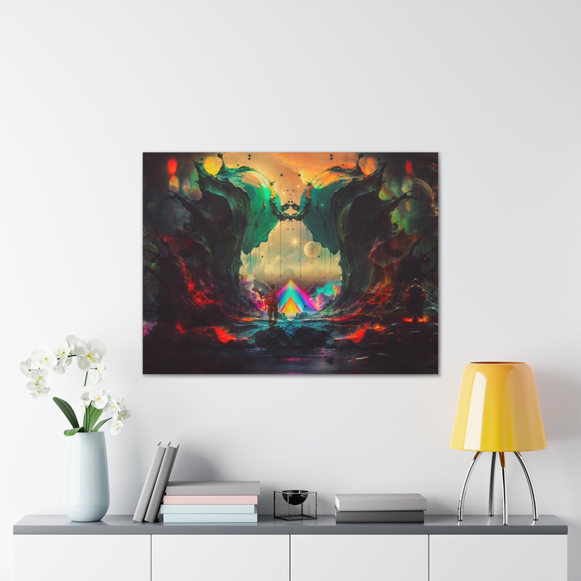 Bring dreamscapes to life with a premium-quality canvas print from psychedelic artist Callahan Indovina, whose works draw inspiration from vivid, surreal experiences within his dreams. Each piece is a portal into layered realities—meticulously detailed, visually immersive, and charged with imaginative energy.