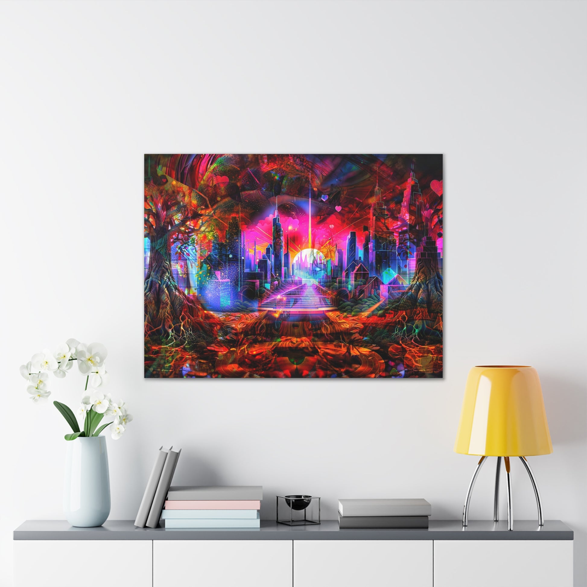 Bring dreamscapes to life with a premium-quality canvas print from psychedelic artist Callahan Indovina, whose works draw inspiration from vivid, surreal experiences within his dreams. Each piece is a portal into layered realities—meticulously detailed, visually immersive, and charged with imaginative energy.